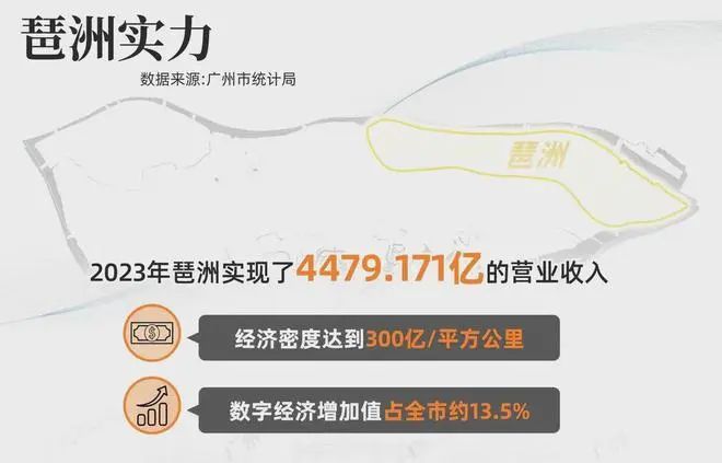 仅2023年,琶洲就实现了4479.171亿的营业收入,折算下来,经济密度达到300亿/平方公里!琶洲的数字经济增加值更占全市的13.5%,广州GDP突破3万亿大关,琶洲功不可没。