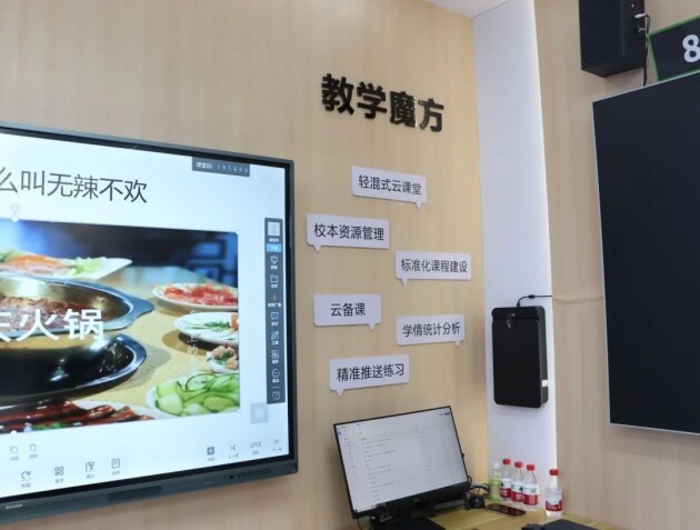 智慧课堂解决方案配备多台智慧黑板及智能交互平板,教师授课端和学生小组端组成的新型小组研讨课堂方式,简化了师生在课堂交互中的流程,提高了课堂资源流动效率,搭配教学魔方、安道白板、云课堂软件等多种软件,不仅能满足常规的智慧课室授课需求,还可以实现“研讨型课堂”、“云课堂”等多种新型教学模式。
