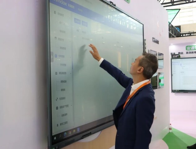 本次展会上,安道教育带来了智慧黑板、智能交互平板等多个系列的大尺寸产品,智慧教学解决方案、智慧配件生态等亮相第82届中国教育装备展示会,以领先的软硬件技术,智能化水平和丰富的配件生态应用,向现场专业用户、师生解锁更多的教学方式和体验,为教育数字化转型实现更多可能性。