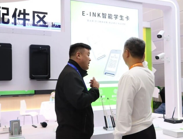安道教育现场同样首次亮相的还有新产品 E-ink智能学生卡,是集学生数据采集、电话通讯、短信接收、校园考勤于一身的智能化学生电子产品,搭配安道教育最新自研教学魔方软件,链接老师、学生、家长三方教学,为课前、课中、课后三大阶段提供系统平台及载体。