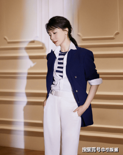 在商务职场场景中,陈数的穿搭始终遵循 专业为本,个性为魂 的原则。她善于将传统的职场单品进行创新组合,在保持职业形象的同时展现个人风格。例如她曾以一套深蓝色条纹西装搭配白色立领衬衫,经典的条纹元素传递出严谨的专业态度,而立领设计则打破常规,增添了造型的现代感。为避免造型过于严肃,她选择了一条带有金属链条装饰的腰带,既强调了腰线,又为整体造型注入时尚活力。